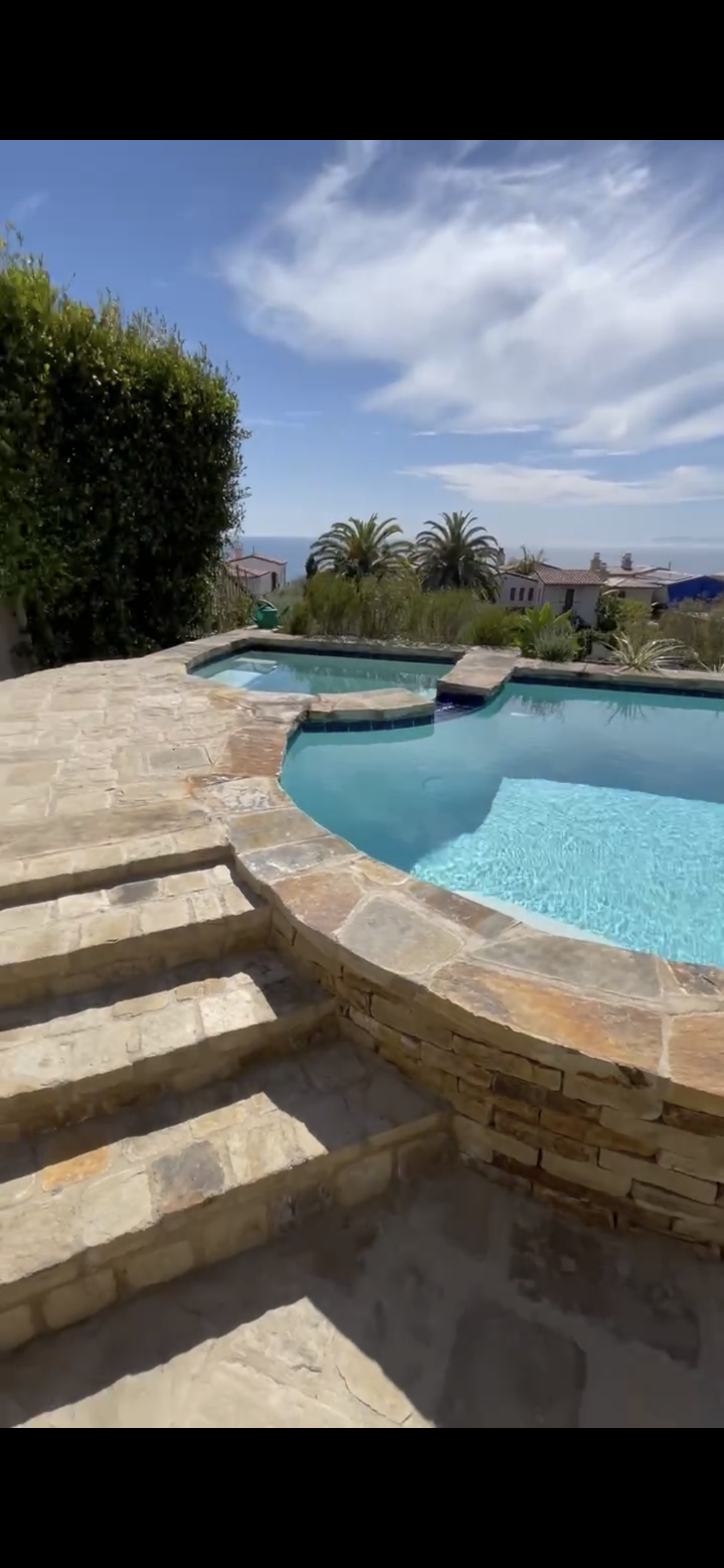 This customer recently had their pool completed by another company and after a year of feeling left unsatisfied with the overall experience, they reached out to us. Using the style of the house and front yard we were able to convert this backyard into a Tuscany Resort that holds an amazing view of the Pacific Ocean. By the end of this project, over 11-ton of natural stone was used.